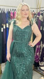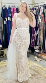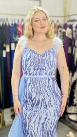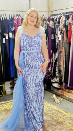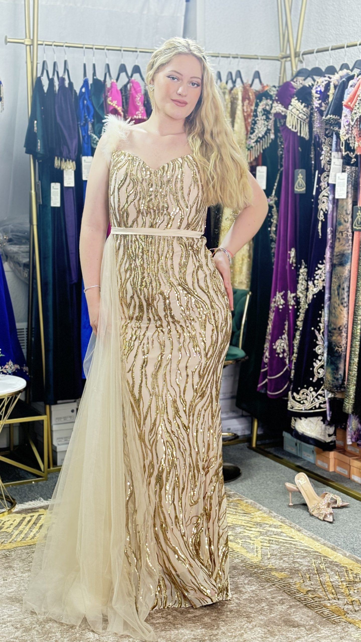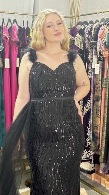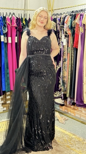 Élégance Envoûtante : Robe de Soirée à Paillettes, Bretelles en Fourrure et Voile Latéral. Cette robe exquise incarne le summum du glamour, alliant le scintillement des paillettes à la touche luxueuse de la fourrure. Avec son voile délicatement drapé sur le côté, elle offre une allure mystérieusement séduisante, parfaite pour briller sous les projecteurs lors des soirées les plus prestigieuses.